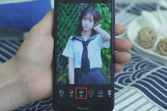 2、照片添加之后,找到照片下方“剪影”的选项进行点击,这时在照片下方找到“人像”的选项点击进入。