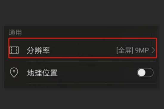 这时进入新的界面上会有“分辨率”的选项,然后点击分辨率,可以看到系统默认的MP设置,将MP更改就可以改变照片kb的大小。