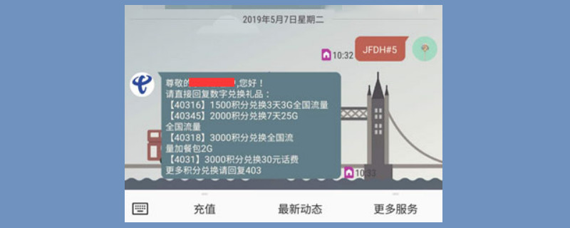 用电信积分兑换话费需要编辑“JFDH#5”字样并发送给10001688,同时再回复“4031”并花费3000积分换取30元话费。一般来说兑换话费要求的积分都比较高,建议早点把积分兑换之后继续获取,以免时间太长最后导致积分清零。