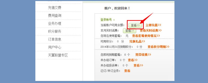 打开百度搜索电信网上营业厅官网,登录之后点击账户就可以查看余额。编辑短信内容102之后发送到10001,这样就会收到电信资费的短信。还可以拨打电话查询电信宽带是否欠费,拨打10000之后接通人工客服,提供账号后就可以查询。