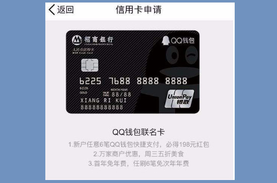 qq其实也可以用来申请信用卡,打开qq之后点击进入qq钱包,在左下角找到“钱包账户”之后找到申请信用卡。经过填表和身份认证之后就可以申请信用卡,不过目前qq只能申请招商银行信用卡以及浦发qq钱包联名信用卡。