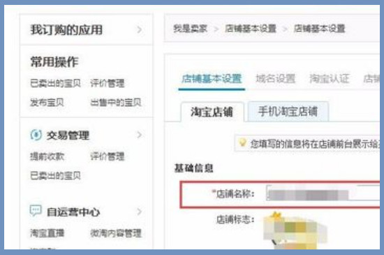点击进入基础设置之后就可以调整店铺的资料,在“店铺基本设置”中选择“淘宝店铺”,点击之后就可以看到下方的“店铺名称”并进行修改。注意店铺的名称最好不好乱改,一定要看淘宝规定之后修改一个符合规格的名称。