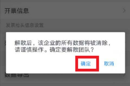3、找到“设置”页面的最底一栏“解散企业”选项,点解“解散企业”并点击“确定”,选择“解散原因”并点击右上方的“确定”,输入钉钉登录密码验证成功后,企业就会在3天后被注销。