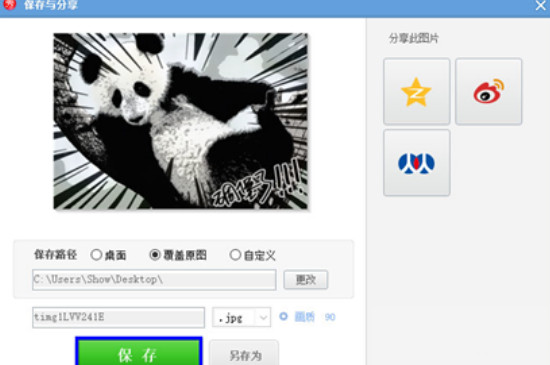 3、将照片调整至满意的漫画程度后,就可以点击“确定”,照片就会变成漫画效果。若不满意还可以点击“撤销”,照片就可以回到上一步操作重新调整,调整完成后点击界面右上角的“保存与分享”,照片漫画效果的文件就能被保存在本地。
