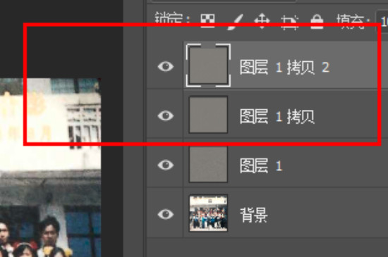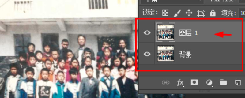 1、想要将老照片修复清晰,可以先用PS软件打开需要修复的老照片,之后再拷贝一个图层。