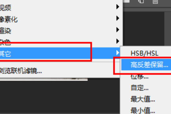 4、对拷贝的图层进行高差保留处理,打开菜单栏中的“滤镜”后,选择其他列表中的“高反差保留”。