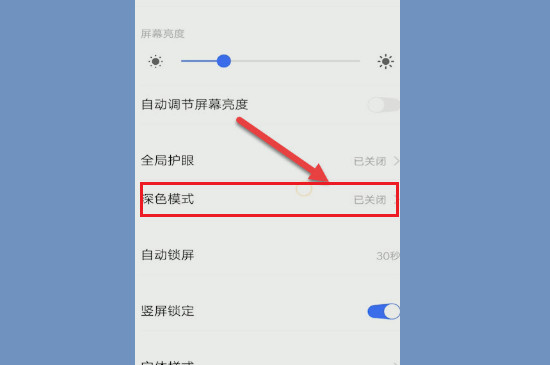 打开安卓手机的设置界面,下拉页面后找到“显示与亮度”,点击“深色模式”之后开启手机的深色模式,将手机深色模式打开之后微信页面也会改为深色。