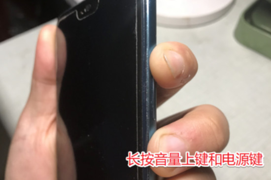 此时确保华为手机已经关机之后,同时长按音量上键和电源键,长按五秒左右的时间之后屏幕会变成蓝色,此时要松开电源键,但是不松开音量上键。