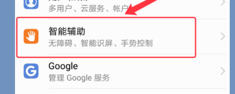 打开华为手机之后点击设置,进入华为手机的设置页面后点击“智能辅助”,这里可以设置关于手机的无障碍、智能识屏以及手势控制。