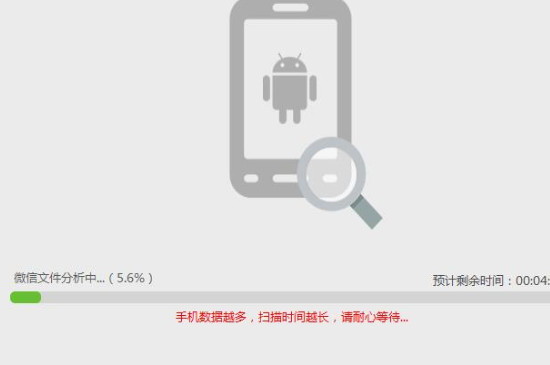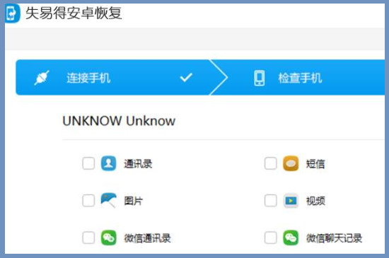 在主界面跳转到扫描类型界面之后,点击“检查手机”选项并开始扫描数据,此时点击“微信聊天记录”并打开扫描。