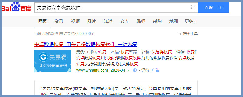想要用华为手机修复聊天记录,先打开电脑后用百度引擎搜索失易得安卓恢复软件,找到软件之后点击页面进行下载。