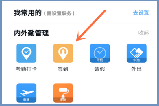 下拉页面之后找到“内外勤管理”,点击内外勤管理栏目中的“签到”,等待几秒钟的页面跳转时间之后,就可以进入钉钉的签到页面了。有时候小助手也会提示打卡,点击小助手之后就可以进行打卡步骤。
