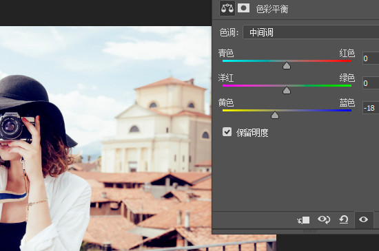 点击右键之后打开“色彩平衡”,打开色彩平衡的图层之后,就会弹出一个色彩平衡的选项面板。