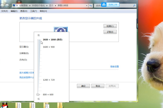 2、点击分辨率选项右侧的选项栏,并点击系统推荐的分辨率。