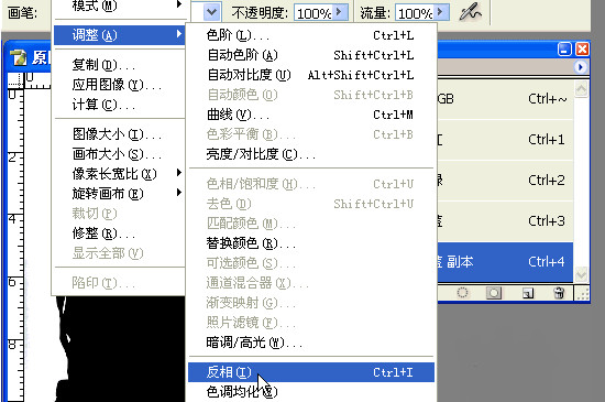 找到工具栏中的“图像”,点击调整后打开“反相”或者按快捷键“Ctrl+I”,将人物变成白色,背景变成黑色,这样人物就可以进行选择状态。点击通道中的“通道作为选取载入”,回到图层后选择背景图层即可,最后复制成品即可粘贴。
