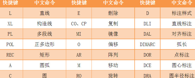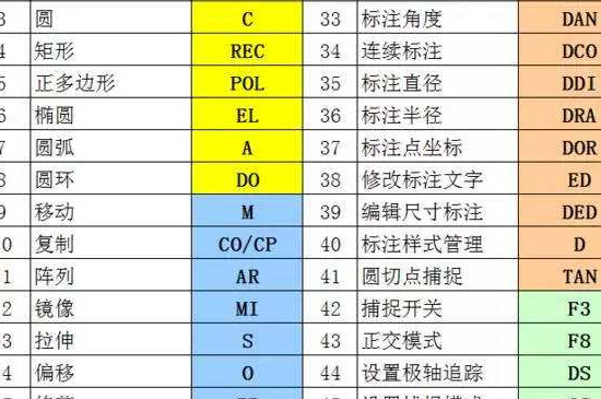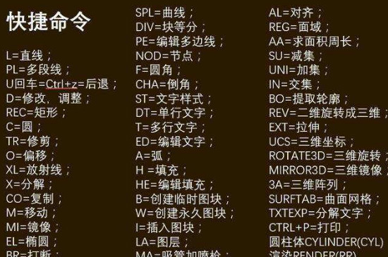 常用的cad绘图命令快捷键有PO画点,L画直线,XL画射线,PL画多段线等。常用的cad修改命令快捷键有复制CO,镜像MI,阵列AR,偏移O,旋转RO等。