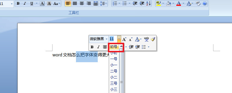 如果暂时不满意目前的字体大小,可以打开word文档,选中文字之后右键点击,此时预览框中会出现字体、颜色的选项,此时就可以将字体根据情况调整大小,或者是在工具栏中选择大号字也可以。