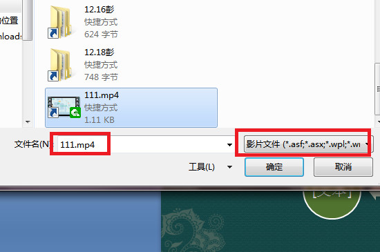 此时弹出一个会话框,就可以选择之前保存好的视频了。注意影片有一定的格式要求,在右下方的“影片文件”中,显示支持MP4、asf、asx、wmd、m1v、3gp等这类的视频格式,总体来说还是很全面的,基本都能打开。
