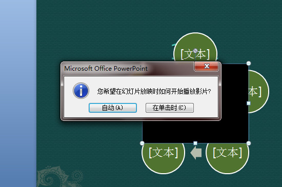 选择好视频文件后点击“确定”即可,此时系统会询问何时播放,可以根据自己的喜好选择直接播放,或者点击后播放。还可以编辑视频的大小,在编辑幻灯片的时候视频框是黑色的,等放映的时候就正常了。