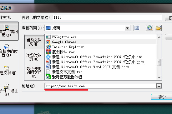 会话框中的文件夹有很多,但是注意超链接的格式非常重要,如果是正常的文件直接在文档中选择就可以了。但是如果是网页,必须以http://打头的网址才可以打开,否则格式出现错误,超链接就会失去作用。