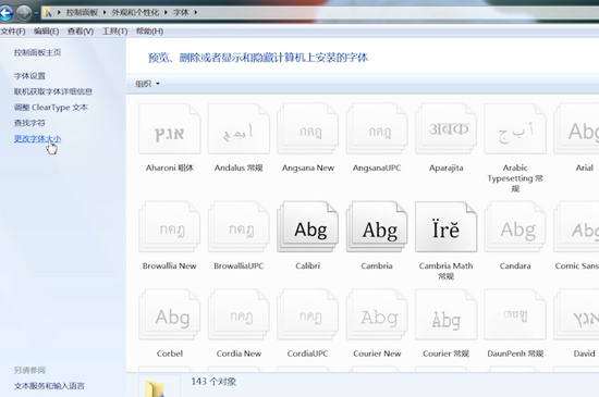 打开电脑桌面计算机程序后,点击界面上方打开控制面板,再点击外观和个性化。之后依次点击字体、更改字体大小并选择需要的字体大小,点击应用就可以进行调整。