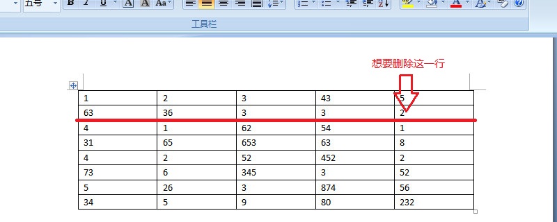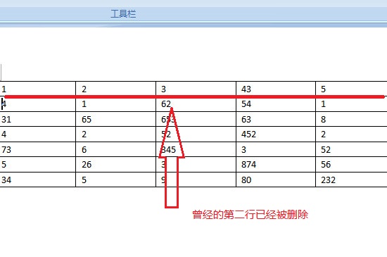 先将word中的表格打开,或者将word文本选取制作成表格,可以看到word中已经呈现了一个表格。如图,表格的行列多少和高度大小都可以调整,如:等下要删掉第二行以数字“63”开头的那一行,删除之前要看清楚想要删除的是哪一行。