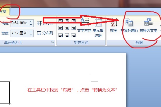 点击“确定”之后右侧那一行的文字全部都被删除了,选中所有剩下的文本,在word上部的工具栏寻找“布局”,在布局中找到“转换为文本”的选项,此时弹出一个窗口,直接选择“段落标记”之后点击确认就可以了。
