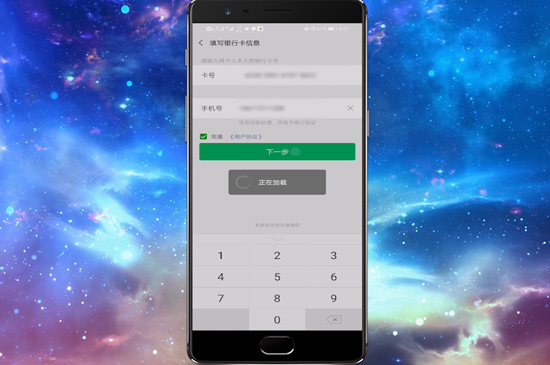 4、最后按照提示验证身份证、银行卡号、银行卡预留手机号及短信验证码等信息,再输入两遍新密码进行确定即可更改密码。