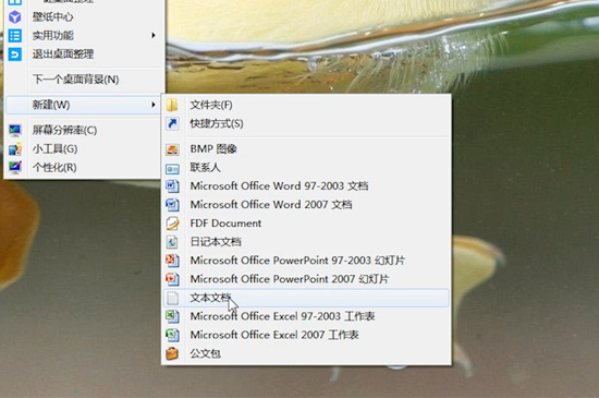 3、鼠标从“新建”功能水平向右滑动至子菜单栏,再左击文本文档,就可以建立出文本文档。