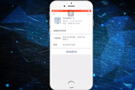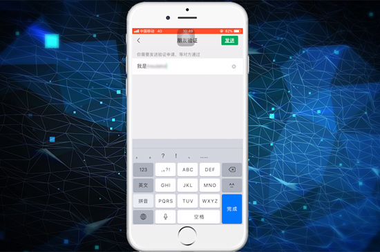 4、搜索出来后,点击添加到通讯录,再输入相关信息点击发送即可。