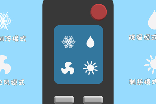 空调4个标志表示运行模式,雪花表示制冷模式、水滴表示除湿模式,风叶表示诚吹风模式,太阳则是代表制热模式,“换气”是指将室外的新鲜空气运输到室内的环境中,同时将室内浑浊的空气排向室外,“健康”是指可以自动清洗过滤网。