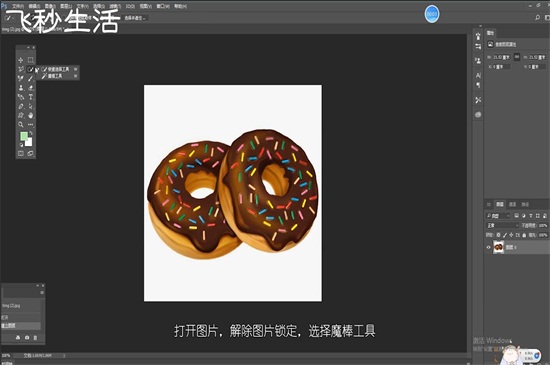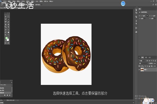打开图片,解除图片锁定,选择快速选择工具,点击要保留的部分,按shift+ctrl+i反选然后按delete键删除即可。