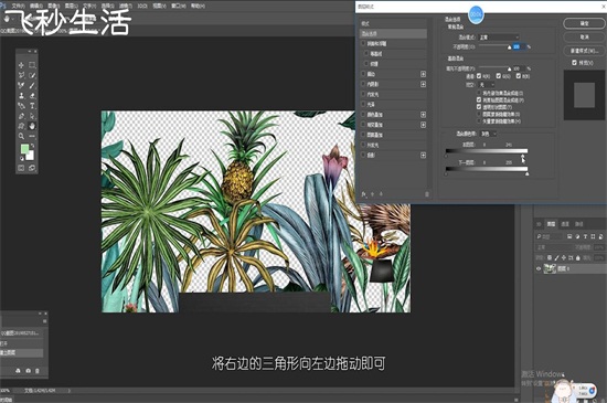 打开图片,解除图片锁定,右键点击图层选择混合选项,将右边的三角形向左边拖动即可。