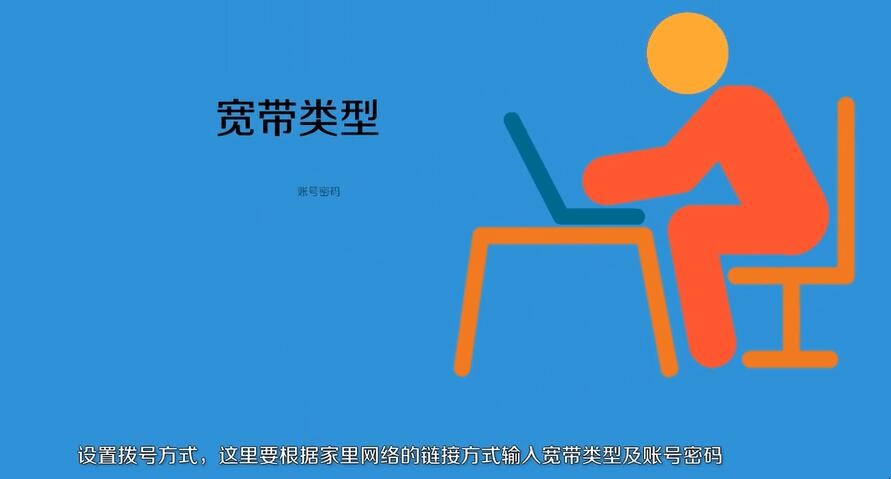 4、设置拨号方式,这里要根据家里网络的链接方式,输入宽带类型及账号密码。如果遗忘了,也可以致电网络营业厅进行询问。