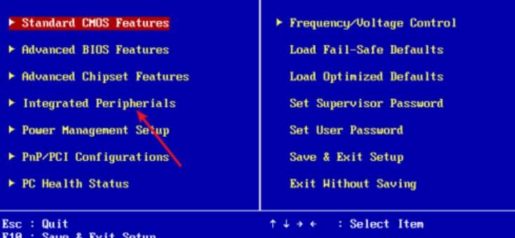3、进BIOS看到右侧,选择【IntergratedPeripherials】。