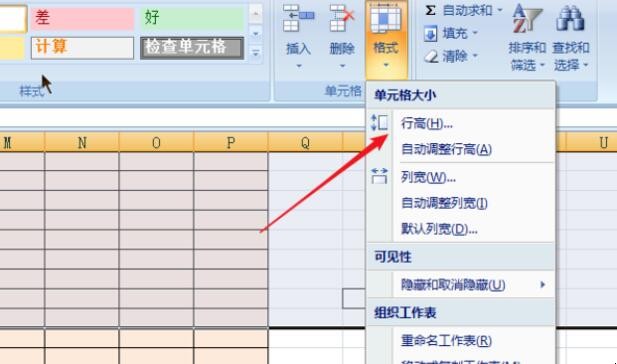 3、在“格式”的下拉菜单中点击选择“行高”选项。