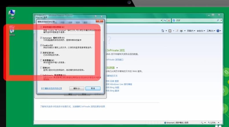 2、点击“删除”,勾选全部选项,点击“删除”按钮。