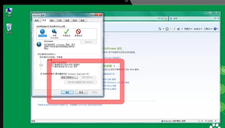 3、点击“安全”,点击“将所有区域重置为默认级别”。