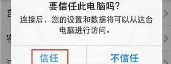3、如果出现信息询问设备密码或让您“信任此电脑”,请按屏幕上显示的步骤操作,选择信任