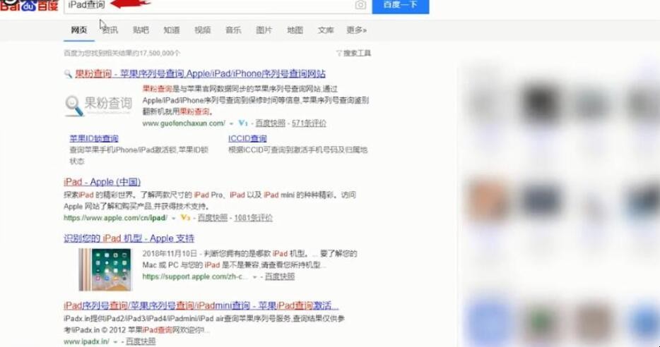 3、上网搜索“ipad查询”,选择第一项打开网页。