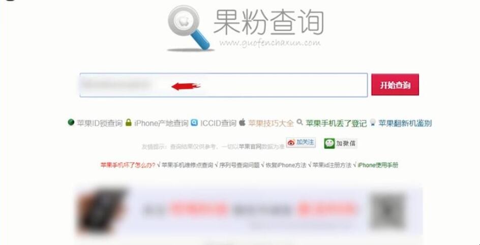 4、输入刚才查看的ipad序列号,点击“开始查询”即可看到ipad型号。