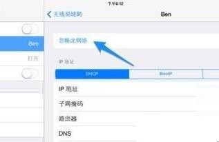 3、然后在里面我们点击最上面的忽略此网络,然后在弹出的窗口里面点击忽略,这样我们曾经对这个网络所有设置都会被删除掉。