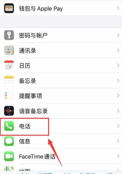 2、在手机设置菜单中点击【电话】。