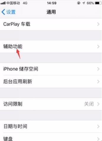 3、点击通用后,进入下图所示的页面,找到并点击辅助功能。