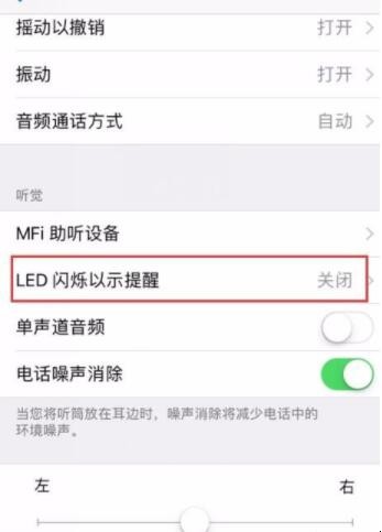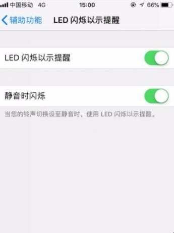 4、打开辅助功能后,弹出下面的页面,找到并打开LED闪烁以示提醒。