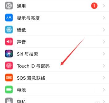 2、进入设置之后,在通用的下面可以看到有个TouchID与密码,点击即可进入到指纹设置里面。