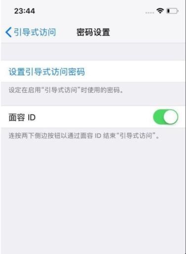1、进入辅助功能打开引导式访问,并开启面容ID。