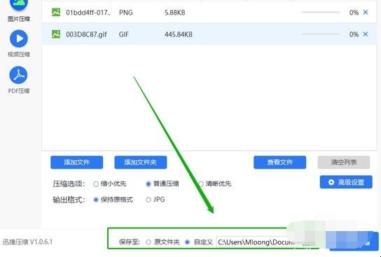 4、压缩之前先要选择一个文件保存的位置,压缩好的图片可以保存在原文件夹中,也可以自定义保存。