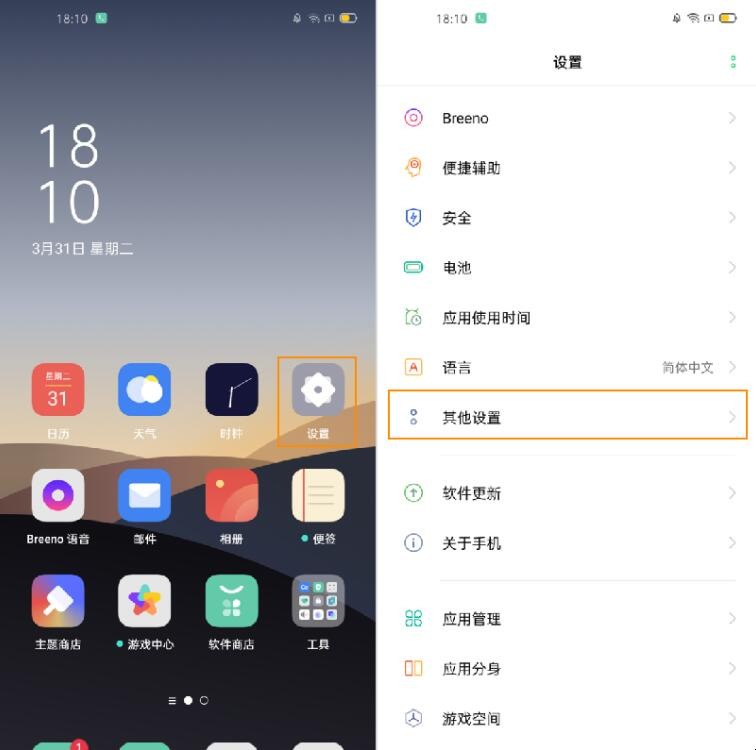 1、通过桌面【设置】-【其他设置】进入。