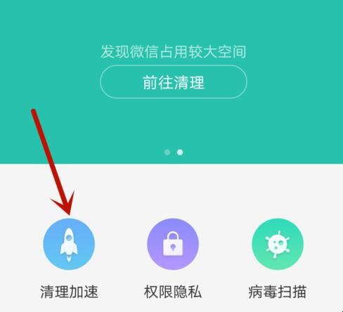 2、然后在进入的界面,点击下面的【清理加速】功能。